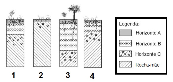 As imagens acima representam a formação do solo. Porém, estão fora de ordem. Qual será a sequência correta ?